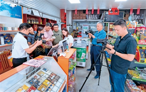 采訪組在靈山縣陸屋鎮新營村寄遞物流綜合服務站深入采訪。