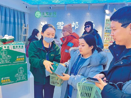 圖為游客在冰雪大世界主題郵局選購文創產品。飛時達快遞代理EMS國際快遞、飛時達國際快遞公司大包航空SAL及海運水陸路、FedEx快遞、DHL快遞、UPS快遞。國際空運、國際海運、國際速遞、國際快件貨運物流、價格優惠80%